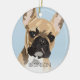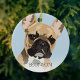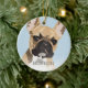 Adorno navideño de bulldog francés inspirado en el arte pop que presenta un perro francés ciervo rojo sobre un fondo azul pastel que se puede cambiar a cualquier color, agregue el nombre de su mascota.