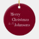 Este es un diseño navideño moderno. Es tendencia en Borgoña y blanco y tiene el mensaje, "¡Feliz Navidad! de los Johnsons". Ideal para decoraciones de árbol de Navidad o ideales como regalos, favores de fiesta o keepsakes. Para personalizar, simplemente agregue su nombre en el cuadro de texto personalizar. Aquí también puede cambiar el resto del texto si lo desea. Compruebe la herramienta de edición de diseño para cambiar el color o el tipo de letra. Feliz Navidad! Para obtener ayuda con la personalización, los productos coincidentes o un correo electrónico de diseño personalizado: ursuladawnmoon@gmail.com