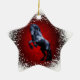 Adorno De Cerámica Caballo frisón, semental negro, nieve, granito roj
