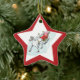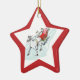 Este diseño es un caballo blanco tirando de un carro rojo a través de la nieve blanca. Las estrellas doradas se colocan alrededor de la carroza. Se añadió un borde rojo al frente y a la espalda. Dale este ornamento como regalo o cuélguelo en tu árbol durante las vacaciones.