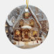 Ornamento navideño de caramelo de pan de jengibre Este original ornamento exhibe una casa festiva de jengibre decorada con latas de caramelo, tejados cubiertos de nieve y luces brillantes, creando un hermoso paisaje invernal. Un tranvía vintage y un árbol cubierto de nieve añaden a la magia de las vacaciones. Personalizar este adorno por una dulce adición a tu árbol o como un regalo de vacaciones reflexivo. Un hilo dorado hace fácil colgar este keepsake por años de alegría navideña.