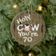 Personalizada y humorística vaca sagrada Alguien es 70 cumpleaños de Navidad Ornamento con fondo de madera de imitación de granero.