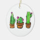 Tres bonitos cactus con flores rosas en pequeñas macetas de terracota - un divertido diseño suroeste. Añadir texto o modificar texto interesante.