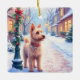Bring holiday joy to the season with this delightful Christmas card featuring a Cairn Terrier on a snowy village street. A glowing lamppost, holly accents, and soft snowfall create a warm and festive atmosphere in watercolor style. The blank interior leaves plenty of space for your personal holiday wishes, perfect for dog lovers and seasonal correspondence.