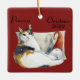 Navidades del Gnome del gato Calico tema acuarela Ornamento cerámico - Un magnífico diseño acuarela de un gato calico reclinándose contra una almohada con su amigo gnomo amigo amigo en un sombrero Santa uniéndose a la escena. Personalice esto con el nombre de su propio gato y Navidades con el año. Puede cambiar el texto a lo que desee o eliminarlo por completo. Esto sería un buen recuerdo de un mascota que ha pasado o del encantador gato que vive ahora. Feliz Navidad de Kristin 'n' Steve en KNS Gear, ¡y gracias por comprar nuestra tienda de Navidades!