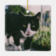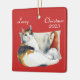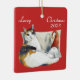 Navidades del Gnome del gato Calico tema acuarela Ornamento cerámico - Un magnífico diseño acuarela de un gato calico reclinándose contra una almohada con su amigo gnomo amigo amigo en un sombrero Santa uniéndose a la escena. Personalice esto con el nombre de su propio gato y Navidades con el año. Puede cambiar el texto a lo que desee o eliminarlo por completo. Esto sería un buen recuerdo de un mascota que ha pasado o del encantador gato que vive ahora. Feliz Navidad de Kristin 'n' Steve en KNS Gear, ¡y gracias por comprar nuestra tienda de Navidades!