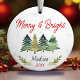 Cálido y brillante árboles navideños adornos de cerámica roja verde. Cuenta con hermosos árboles y vegetación Navidad, y la parte trasera está llena de un fresco patrón de cestería de baffalo verde. Un regalo maravilloso para cualquier miembro de la familia, amigo o compañero de trabajo. Personalízalo con su información y fecha específicas.