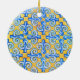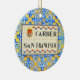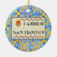 Ornamento cerámico de Rótulo Callejero Español de la Calle San Francisco. Ornamento colgante de Guay impreso con un verdadero cartel en la calle española. Carrer San Francisco, que significa calle San Francisco. Con un bonito diseño de azulejos mediterráneos azules y amarillos.