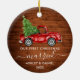 Guión moderno de caligrafía de moda Nuestro primer ornamento casado de Navidad incluye Watercolor Vintage Rojo Camión con Árbol de Navidad - Rústico País Impresión de madera