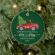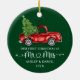 Caligrafía moderna Script Corazón de nuestra primera Navidad como Sr. y Sra. - Ornamento de Camión Rojo Vintage Watercolor - Fondo Verde Forestal