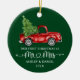 Adorno De Cerámica Calligraphy Heart First Christmas Red Truck Green