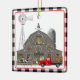 Adorno De Cerámica Camión Rojo pequeño y antiguo granero de ganado