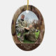 Rustic brown camouflage ornament personalized with two photos (one on each side) and your custom text. The sample commemorates a hunter's BIGGEST BUCK deer picture but all text is editable for your needs. The design is duplicated on the back side; use the same or a different photo. The design also lends itself for outdoor photos like camping, hiking, etc. CHANGES: The text font style, size and color can be changed in EDIT. ASSISTANCE: For help with design modification, contact the designer BEFORE ORDERING via the Zazzle Chat MESSAGE tab or email makeitaboutyoustore@gmail.com.