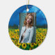 Adorno De Cerámica campo de girasol de verano del granero rojo del pa
