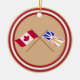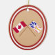 Las banderas cruzadas de Canadá y de Terranova dejan claramente el mundo saber dónde miente su afecto. Si su lugar casero o preferido a visitar, las banderas lo hace obvio. La parte posterior de este ornamento exhibe los brazos brasileños.