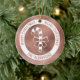 Diseño de la línea de arte de la silueta de caramelo blanco de Destei sobre un fondo falso de textura de Relieve metalizado rosa dorado (NO REAL RELIEVE METALIZADO). Hay un círculo blanco en la frontera que dice: "Feliz Navidad" dos veces y en la parte inferior hay un área de texto personalizable para un nombre de familia u otro texto personalizado. AVISO: El Relieve metalizado no es real. Es una imagen creada digitalmente que se imprimirá en el producto.