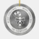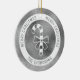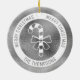 Diseño de la línea de arte de la silueta de caramelo blanco de Destei sobre un fondo falso de textura de Relieve metalizado gris plateado (NO RELIEVE METALIZADO REAL). Hay un círculo blanco en la frontera que dice: "Feliz Navidad" dos veces y en la parte inferior hay un área de texto personalizable para un nombre de familia u otro texto personalizado. AVISO: El Relieve metalizado no es real. Es una imagen creada digitalmente que se imprimirá en el producto.