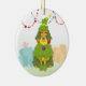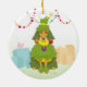Añada un humor del groomer del pequeño perro a su árbol con este ornamento divertido de un caniche preparado como un árbol de navidad con los ornamentos y la guirnalda. Diseñado por Kaz Foxsen.