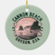 El elegante ornamento de keepsake ofrece unas vistas al agua rosada de estilo retro de la playa de Cannon, O sobre un fondo verde pastel.