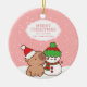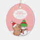 Reparte alegría de vacaciones con nuestro ornamento de cerámica Capybara y Snowman. Este adorable ornamento tiene un capibara con sombrero de Santa y un muñeco de nieve disfrazado de invierno, con un fondo de nieve blanco y rosa. Personalízalo con un nombre para crear un regalo para los seres queridos. Perfecto para añadir un toque festivo a cualquier árbol de Navidad.