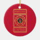 Este adorno navideño personalizado está decorado de un lado con el escudo del capitán del bombero. El reverso está decorado con una imagen de Santa Claus llevando su bolsa de mercancía, y se puede personalizar con nombres, fechas, etc.
