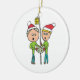 Dos Navidades cantantes de villancicos comparten música de hojas y una luz. ¡Llevan gorras de Navidad y aparecerán en tu puerta principal para cantar villancicos de Navidad! Sé amable con ellos.