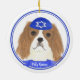 ¡Celebra tu mensch favorito en un banco con un adorno personalizado! Este diseño presenta un ilustracion dulce de un perro canalla de caballería rojo y blanco o blenheim con un yarmulke azul y blanco. Para los regalos más reflexivos, ¡emparejételos con otro artículo de mi colección! Para ver más trabajo y aprender sobre esta artista, visita www.theprintsprincess.com o www.instagram.com/theprintsprincess