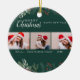 Ornamento de cerámica de Collage de fotos para el feriado de caña de caramelo rojo y blanco. El elegante ornamento de fotos de vacaciones cuenta con follaje color agua verde y tres fotos cuadradas favoritas. Para realizar cambios anticipados, seleccione la opción "Hacer clic en el personalizar más adelante" bajo personalizar esta plantilla.
