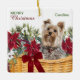 Adorno De Cerámica Cesta de Navidades de Poinsettia Yorkie Terrier