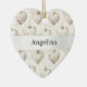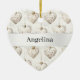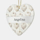 Adorno De Cerámica Chic Cream Hearts Silver Ribbon Christmas