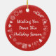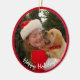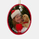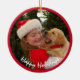 ¡Qué podría ser más emocionante que un nuevo cachorro a los Navidades! La dulce joven chica de Santa hat sostiene su nuevo cachorro. El cachorro lleva un collar rojo. El lote de árboles de Navidad está en el fondo. Un regalo o una decoración divertidos para tu árbol. Sorprendentes ornamentos de Navidad para tu casa o para regalos. Cambia fácilmente el texto a tu propio. También cambia la foto a una de las tuyas si así lo deseas.