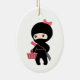 Personalizado guapa ninja chica vestida de negro pero con un arco rosado encima de su máscara de cabeza. Se puede ver la tradicional espada japonesa de katana atada a su espalda, su mango también color rosa. El chica sostiene una canasta de compras rosa.