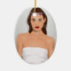 CHICA DE VERANO LLEVANDO SOMBRILLAS EN LA CABEZA Y UNA TUBO BLANCA EN LA PARTE SUPERIOR