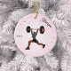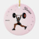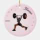 Adorno De Cerámica Chica Halterofilia Trabajar Nombre y Año Rosa