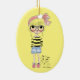 Adorno De Cerámica Chica lindo con los vidrios redondos y su gato