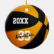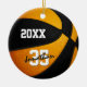 Este genial equipo colorea el adorno de baloncesto para niños o chicas, presenta un baloncesto de apariencia realista que tiene paneles de color negro y naranja alternados - personaliza el frente y la parte posterior del ornamento con el año y el nombre del jugador en un tipo de letra "autógrafa" sobre el número jersey del atleta - por katz_d_zynes