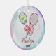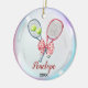 Celebra tu estrella de tenis con este adorable adorable adorno de cerámica personalizada, con un diseño de racquet de tenis de chica. Perfecto para atletas, amantes del deporte o regalos de equipo, este adorno de keepsake le da un toque deportivo a su decoración de vacaciones. con colores vivos, es una manera cuidadosa de mostrar su pasión por el tenis. Personalizar con nombre, número o año para crear una memoria única que valorará durante años. ¡Un gran regalo de vacaciones para los jugadores, entrenadores o familias de tenis!