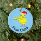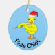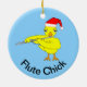 Una linda chica amarilla que usa un sombrero de Santa y toca una flauta es un diseño musical humorístico para hacer cosquillas a los músicos de viento de madera en orquesta, conciertos y bandas de marcha durante las vacaciones de invierno.