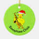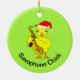 Una linda chica amarilla sujetando un saxo y usando un sombrero de Santa es un divertido diseño de regalo para los músicos en las vacaciones de invierno. Se puede cambiar el texto.