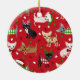 Navidades guapos Perros Chihuahua con abrigos negros, canteros, crema, azules y grises vestidos con trajes festivos, sombreros de Santa y sudaderas de argyle con adornos navideños dispersos.