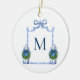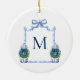 Bring timeless charm to your holiday décor with this Chinoiserie Ginger Jar Monogrammed Christmas Ornament. Featuring a watercolor blue and white ginger jar decorated with a green wreath and blue bow either side of a bamboo crest with your personalized initial, it’s a classic design with a preppy twist. Hang it on your Christmas tree for a touch of tradition that feels uniquely yours, or gift it to loved ones for a thoughtful keepsake. A beautiful way to celebrate the season with personal style.