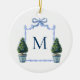 Trae un encanto intemporal a su decoración de vacaciones con este restaurante chinoiserie de árbol de topiario monogramado de Navidad. Con un árbol topiario acuarela decorado en arcos azules a cada lado de un escudo de bambú con su inicial personalizada, es un diseño clásico con un toque de adormidera. Cuelga en tu árbol de Navidad por un toque de tradición que se siente único en el tuyo, o dáselos a los seres queridos para que se mantengan atentos. Una hermosa manera de celebrar la temporada con estilo personal.