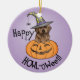 ¡Es hora de divertirse en Halloween! Trick o Treating with this nice Lab puppy witch, con un gorra de brujas, en un sonriente Jack-o-Lantern. Gran regalo para niños de todas las edades que aman Labrador Retrievers y Halloween. ¡Feliz Howl-oween!