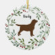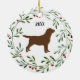 Adorno Navideño de Labrador Chocolate en un bonito diseño de corona. Personalice con nombre y año. DERECHOS DE AUTOR © 2020 Judy Burrows, Black Dog Art - Todos los Derechos Reservados