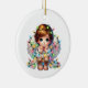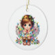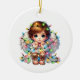 This ceramic ornament is shown with a cute holiday angel art print with a believe print on the back side.