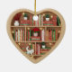 Please note: This is a 2D flat printed graphic print, printed onto an ornament. // - // tiny book shelf shelves, love to read books, christmas red green bookshelf,heart shaped pretty bookshelves, i love to read,reading love reader,holiday avid story lover,collecting xmas stories series,white pet white cat, "for women girls her"