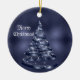 Adorno De Cerámica Christmas Celebration Shiny Blue Ribbon Tree