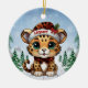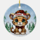Christmas Leopard Spots Kitty Cat Lovers ceramic ornament featuring a fun cute Xmas cartoon graphic with personalizable santa hats. Customize by changing the name. Perfect customizable gift for any wild baby feline enthusiast or Woodland Wildlife animal print fan. Two sided Kitten design ensures your tree always looks festive & complete. Add a unique touch & holiday spirit cheer to your décor with this custom one-of-a-kind, purr-fect winter season keepsake! 🐆🐈🐾