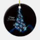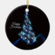 Christmas Party Blue Tree Shiny Black Elegant Ceramic Ornament. Unique, beautiful, stylish design. Easy to be personalized. Font style, size and colors can be changed. Matching items are available.
