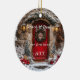 Beautiful red Holiday Front Door has a beautiful Christmas wreath. The Door has a gorgeous snow covered greenery arch above it. The front steps have gold wrapped gifts and red Poinsettias. Beautiful ornament gift for Our First Home, Our First Christmas. Change text to read anything you like.